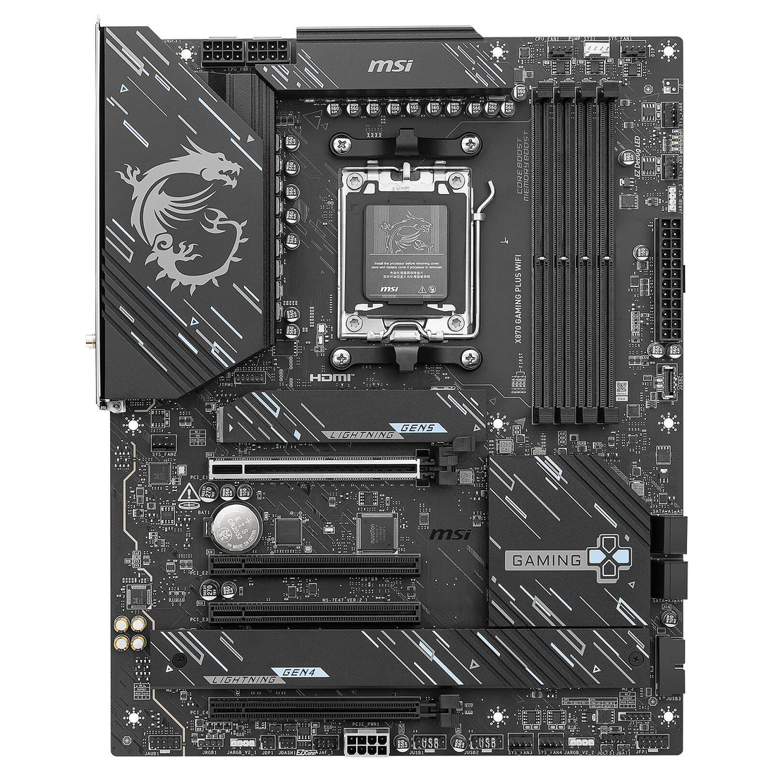 The MSI X870 GAMING PLUS WIFI is a high-performance ATX motherboard designed for AMD’s AM5 platform, built to support the latest AMD Ryzen 7000 series processors. This motherboard offers a solid set of features for gamers and PC enthusiasts looking to build a powerful and reliable system. Here's a detailed look at its key specifications and features:
