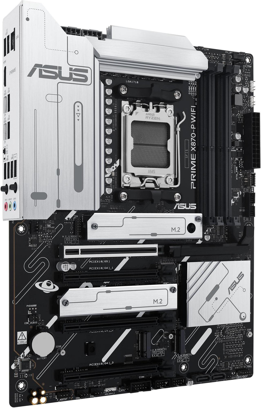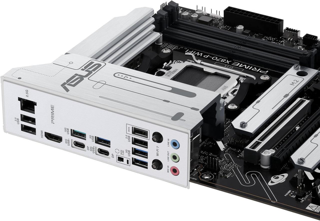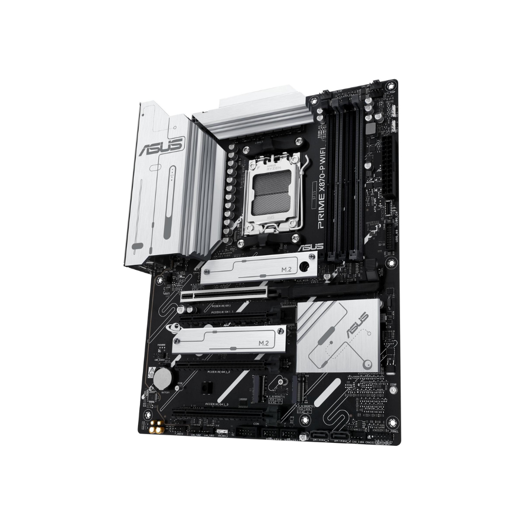 The ASUS PRIME X870-P WIFI is an advanced ATX motherboard designed for high-performance computing, perfect for users looking to build powerful systems with the latest technologies. It supports the AMD AM5 socket and Ryzen 7000-series processors and integrates cutting-edge features like PCIe 5.0, DDR5 memory, Wi-Fi 7, and USB4. With robust power delivery, multiple M.2 slots, and high-speed networking options, the PRIME X870-P WIFI is ideal for gamers, content creators, and professionals looking for a reliable and future-proof platform.