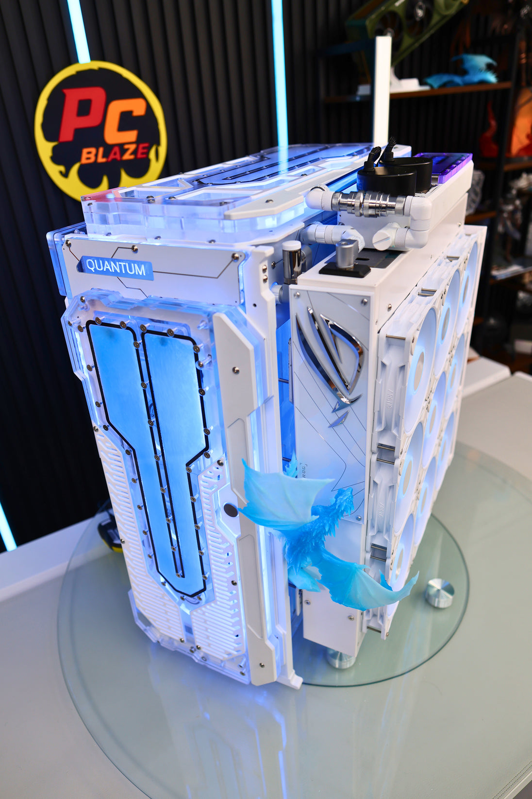 At the heart of the system is the powerful AMD Ryzen 9 9850X3D processor paired with the ASUS ROG Crosshair X870 Extreme Glacial motherboard, delivering exceptional performance in both gaming and demanding workloads. The system is equipped with a massive 192GB of Corsair Dominator Titanium DDR5 memory and an ultra-fast 8TB Samsung 9100 NVMe SSD, ensuring lightning-fast responsiveness and enormous storage capacity.